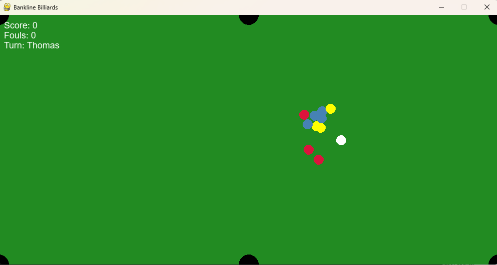 Turns & Scoring: Proper turn management between players; scoring based on pocketing balls with fouls tracked.